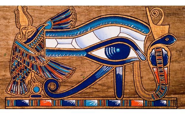 Übrigens – hier ist das Auge des Horus (des Sohnes von Osiris und Isis) wie es von den Ägyptern dargestellt wurde. Beachten Sie, dass das Auge sich in der Mitte des obigen Emblems der Freimaurer befindet.