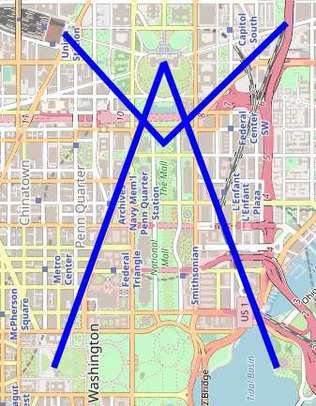 Sie entwarfen ein auf den Kopf gestelltes Pentagramm, dessen Basis sich dort befindet, wo das Weiße Haus ist: